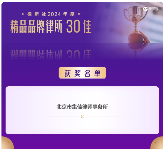 九球体育凭借在知识产权保护领域卓越的专业实力与良好的行业口碑,入选《律所卓越品牌影响力指南(2024)》,荣获“律新社2024年度精品品牌律所30佳”奖项;同时,集佳周丹丹律师代理的“美摄公司诉抖音公司'抖音'软件代码抄袭著作权侵权案”获评“律新社2024年度标杆案例:知识产权-著作权领域”。